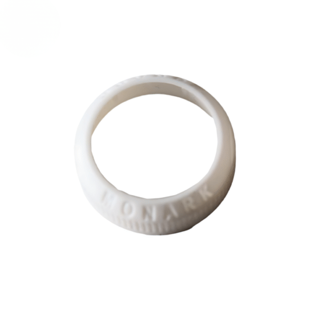 Acabamento de porca da direção na cor branca para modelos Monark 70/80. Finaliza o conjunto superior do garfo, padroniza o visual e valoriza projetos com estética de fábrica.