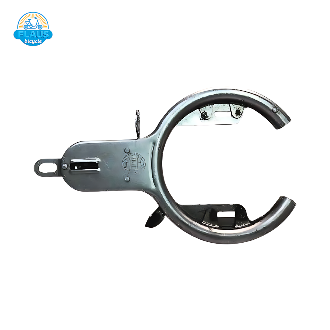 Estrutura envolvente com lingueta de travamento que bloqueia a roda em segundos, ideal para exibição e segurança básica em projetos clássicos. Pivôs suaves e fenda para chave no padrão tradicional. Produção Flaus Bicycle com material reforçado e tolerâncias ajustadas para funcionamento confiável.