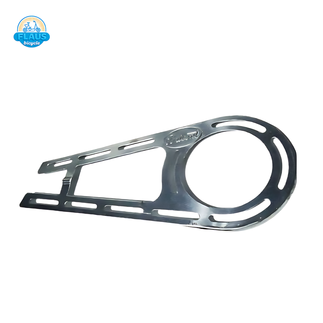 Cobre corrente no padrão Bricente com recortes vazados que promovem ventilação e leveza. Ideal para bicicletas clássicas com capa de corrente, protege roupas e reduz atrito na transmissão. Sua estrutura decorativa agrega valor visual em projetos restaurados, mantendo perfil funcional. Compatível com quadros que aceitam capa de corrente padrão.