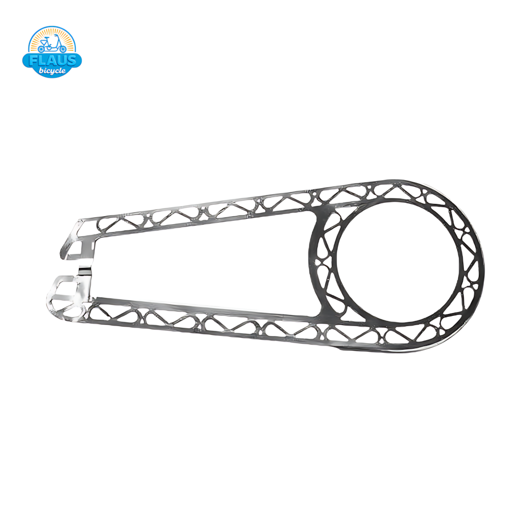 Cobre corrente metálico com design em trama aberta e recortes circulares, compatível com bicicletas Prosdócimo aro 22 a 26. Modelo nacional com estética vintage e estrutura reforçada. Ideal para restauração de bicicletas antigas com visual clássico e proteção funcional à corrente.