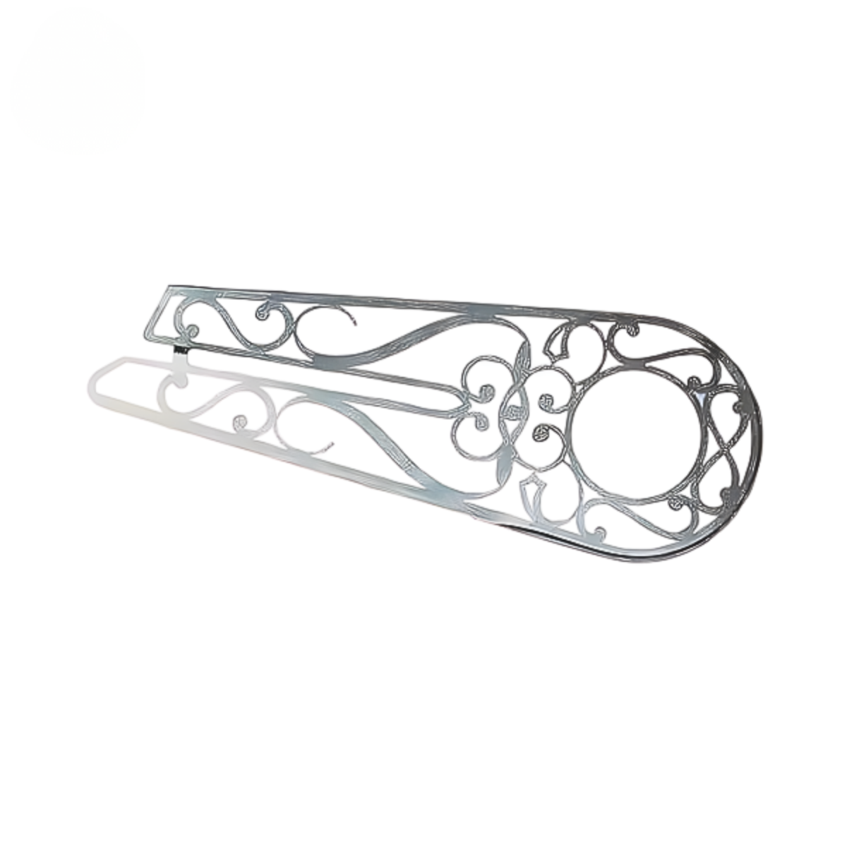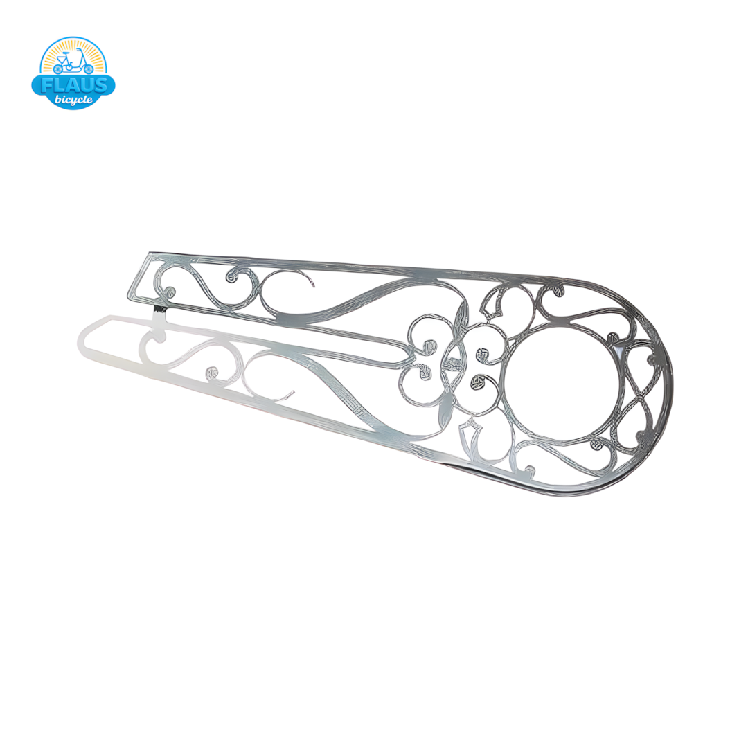 Versão alternativa do cobre corrente Suecas com recortes diferenciados e estética refinada que valoriza o visual da bike restaurada. Permite ventilação, mantém rigidez e agrega ornamentação ao conjunto clássico. Ideal para projetos de bicicletas antigas com ‘charme’ extra.