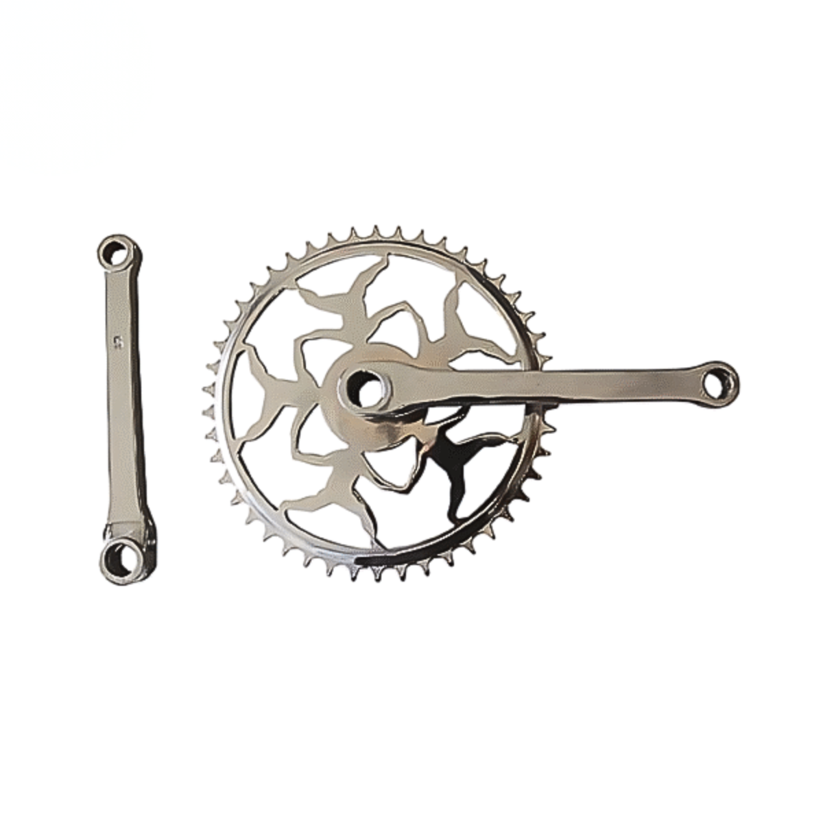 Coroa com pé de velas Humber 46 dentes com design histórico inglês e recortes característicos. Modelo clássico muito utilizado em bicicletas de época, valorizado por seu estilo original e durabilidade.