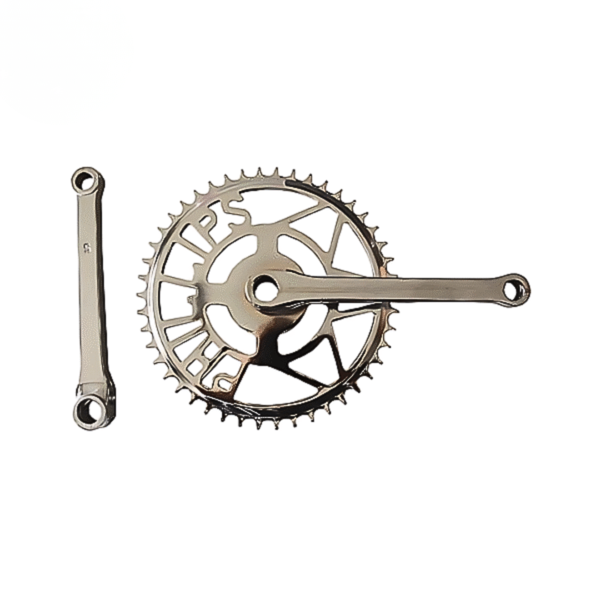 Coroa com pé de velas Phillips 46 dentes, modelo leve e tradicional das bicicletas britânicas. Equilibra estética clássica e excelente funcionalidade para restaurações.