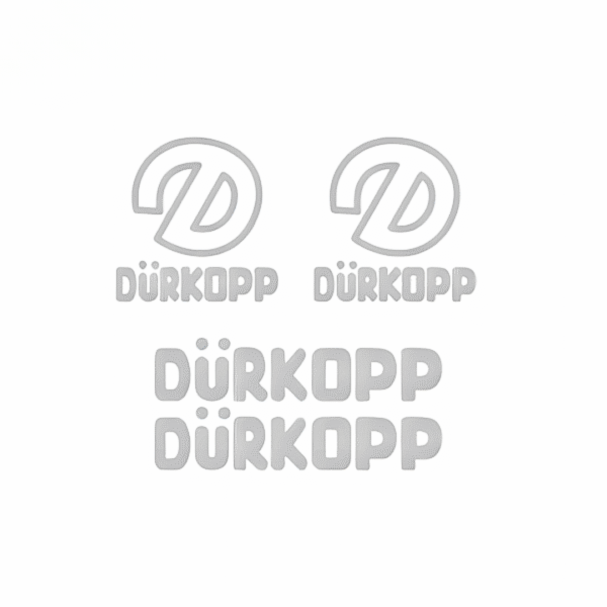 Conjunto com logotipos e brasões Durkopp na composição usada nas séries da década. Impressão de alta definição e cores consistentes. Produção Flaus Bicycle pensada para aplicação limpa, sem prateamento. Solução segura para projetos de preservação.