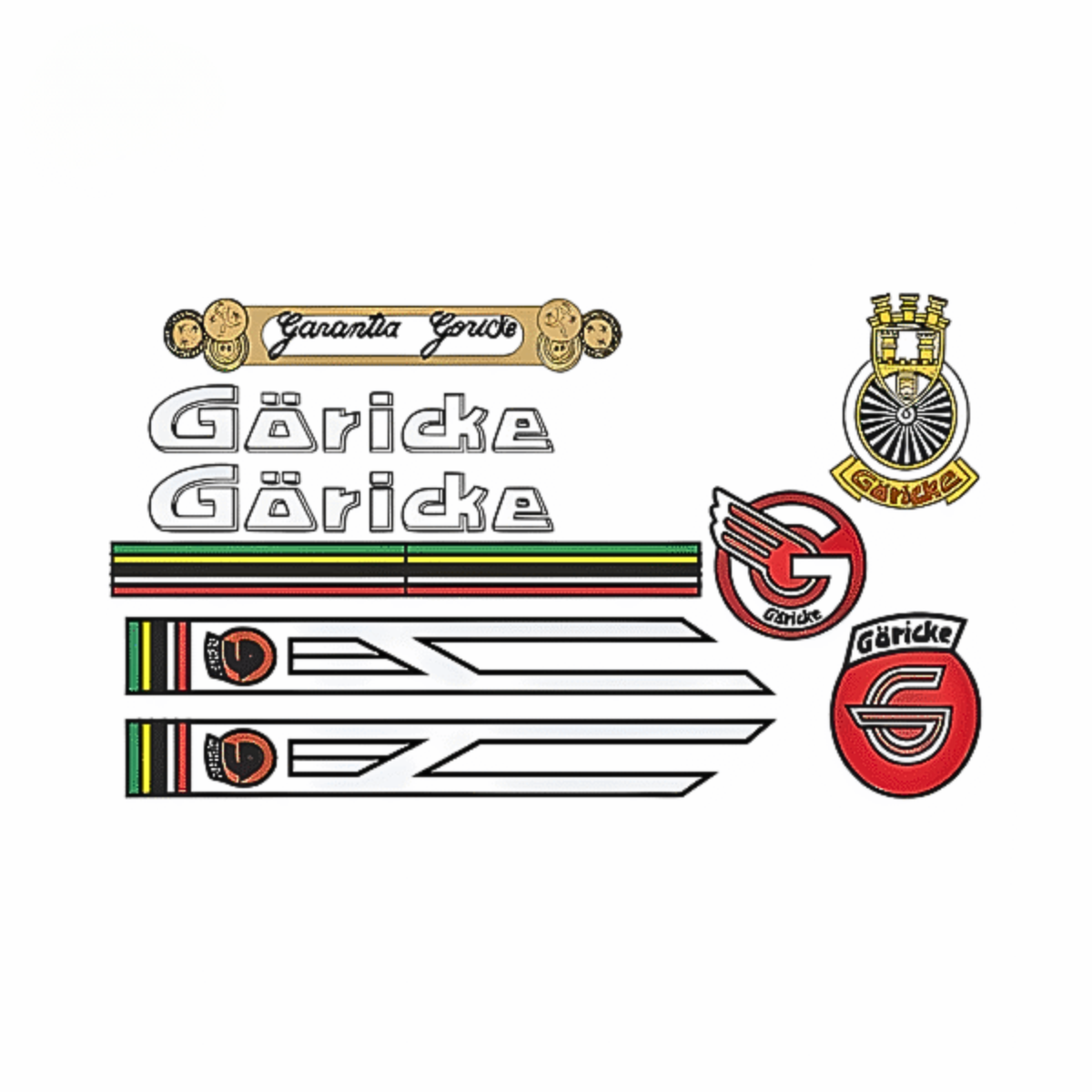 Lâmina completa com brasões, filetes e assinaturas Goricke usadas nas bikes nacionais de época. Impressão nítida e cores clássicas. Produção Flaus Bicycle para restaurações que preservam história e autenticidade.