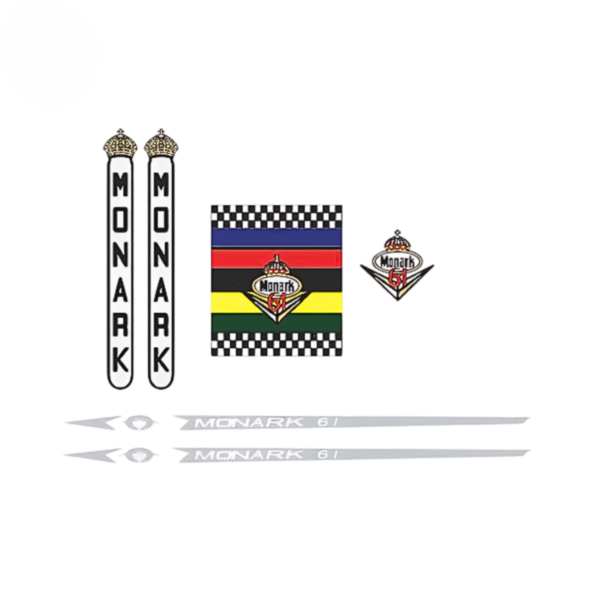 Decalques restaurados com precisão baseados nas Monark 61 originais. Impressão premium e adesivo de longa duração. Produzido pela Flaus Bicycle para colecionadores que prezam autenticidade e estética.