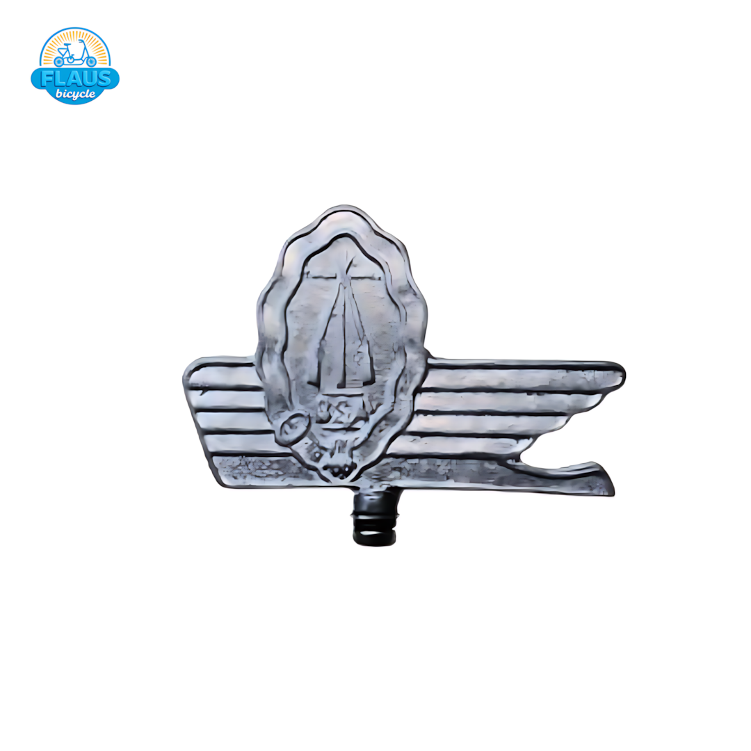 Emblema BSA Inglesa para paralamas, com símbolo clássico das bicicletas britânicas. Produzido pela Flaus Bicycle, possui formato fiel ao original, ideal para restaurações e coleções de modelos ingleses.