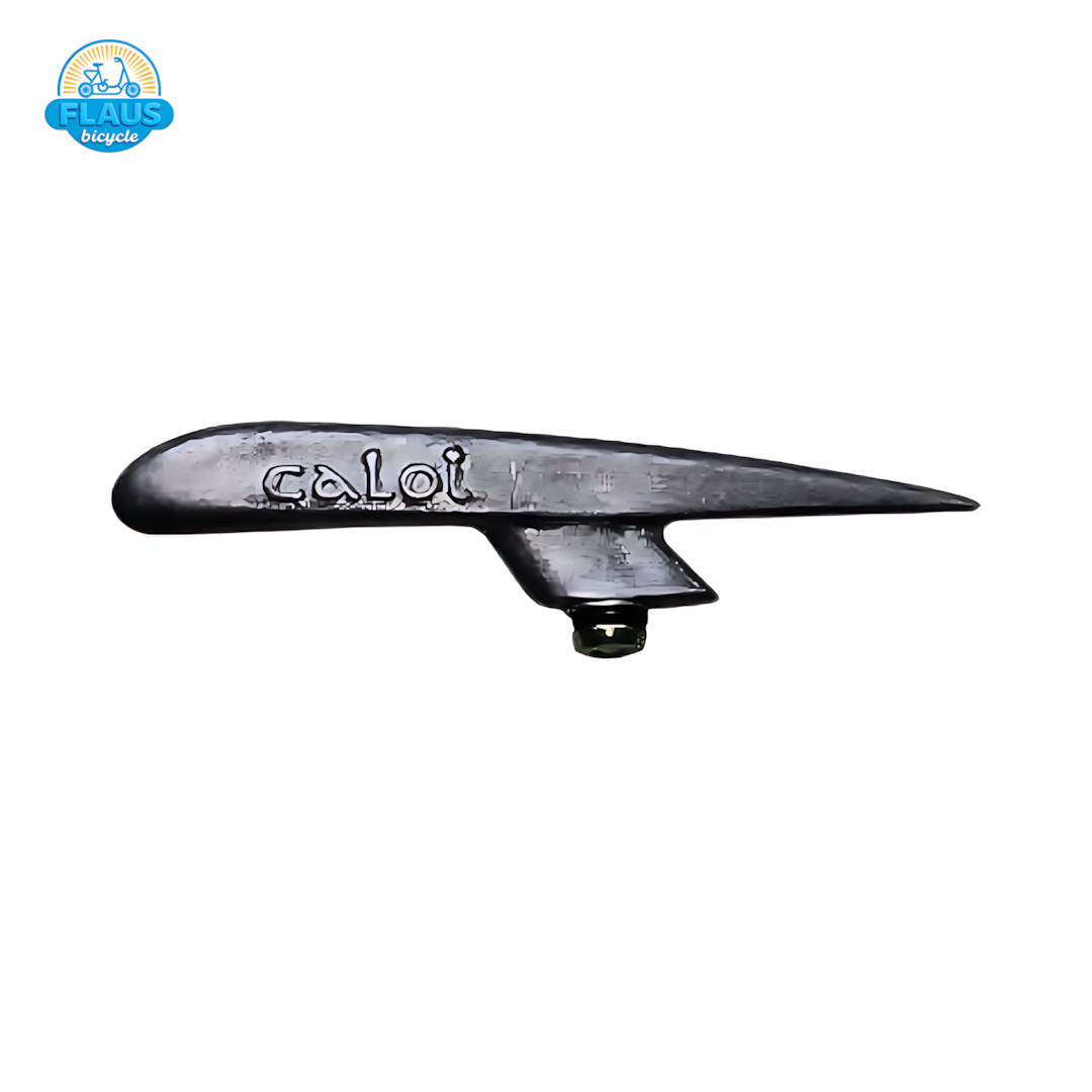 Emblema Caloi Anos 70 com design em formato de projétil, clássico das bicicletas brasileiras. Produzido pela Flaus Bicycle com encaixe compatível e visual nostálgico.