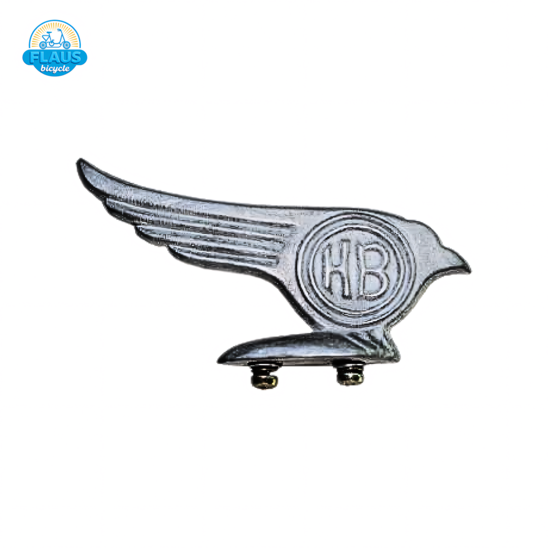Emblema Helbia Nacional com asas elegantes e logotipo central. Produzido pela Flaus Bicycle com fidelidade visual aos modelos originais brasileiros, combinando tradição e autenticidade.