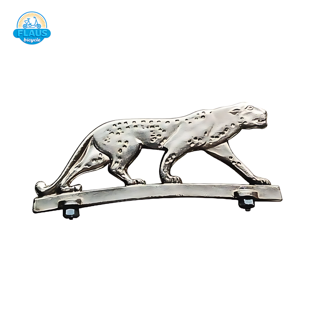 Emblema Universal e Panter, com o icônico felino em movimento. Produzido pela Flaus Bicycle com fidelidade ao design original europeu. Peça de destaque para bicicletas restauradas e colecionadores que apreciam símbolos de velocidade e potência.