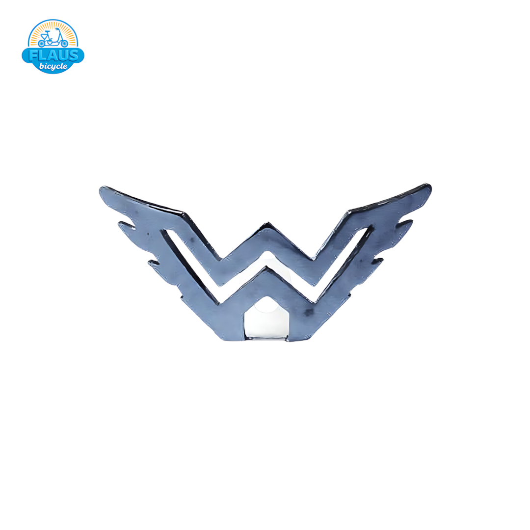 Emblema Vandere em formato de asas estilizadas, símbolo clássico de velocidade e estilo. Reproduzido pela Flaus Bicycle com acabamento polido e base reforçada. Indicado para bicicletas restauradas ou customizadas com DNA retrô.