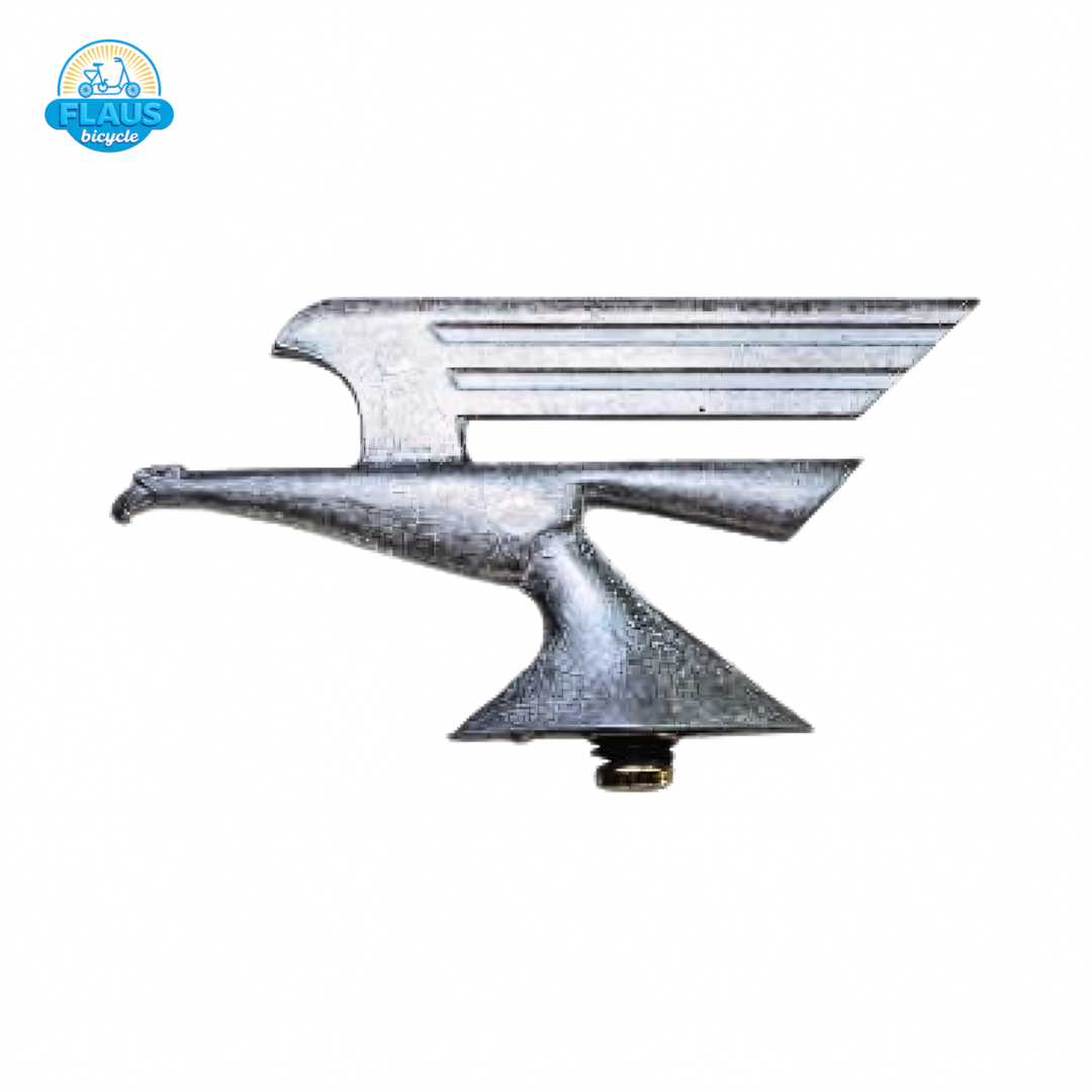 Enfeite Adler Anos 30, inspirado nas bicicletas alemãs pré-guerra. Design refinado em formato de ave, com linhas aerodinâmicas e acabamento artesanal Flaus Bicycle.
