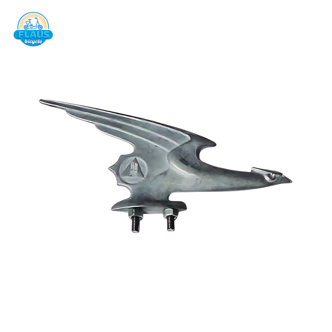 Enfeite de paralama modelo Japonês com formato de ave em voo, símbolo das bicicletas orientais da década de 50. Produzido pela Flaus Bicycle com estrutura resistente e encaixe universal.