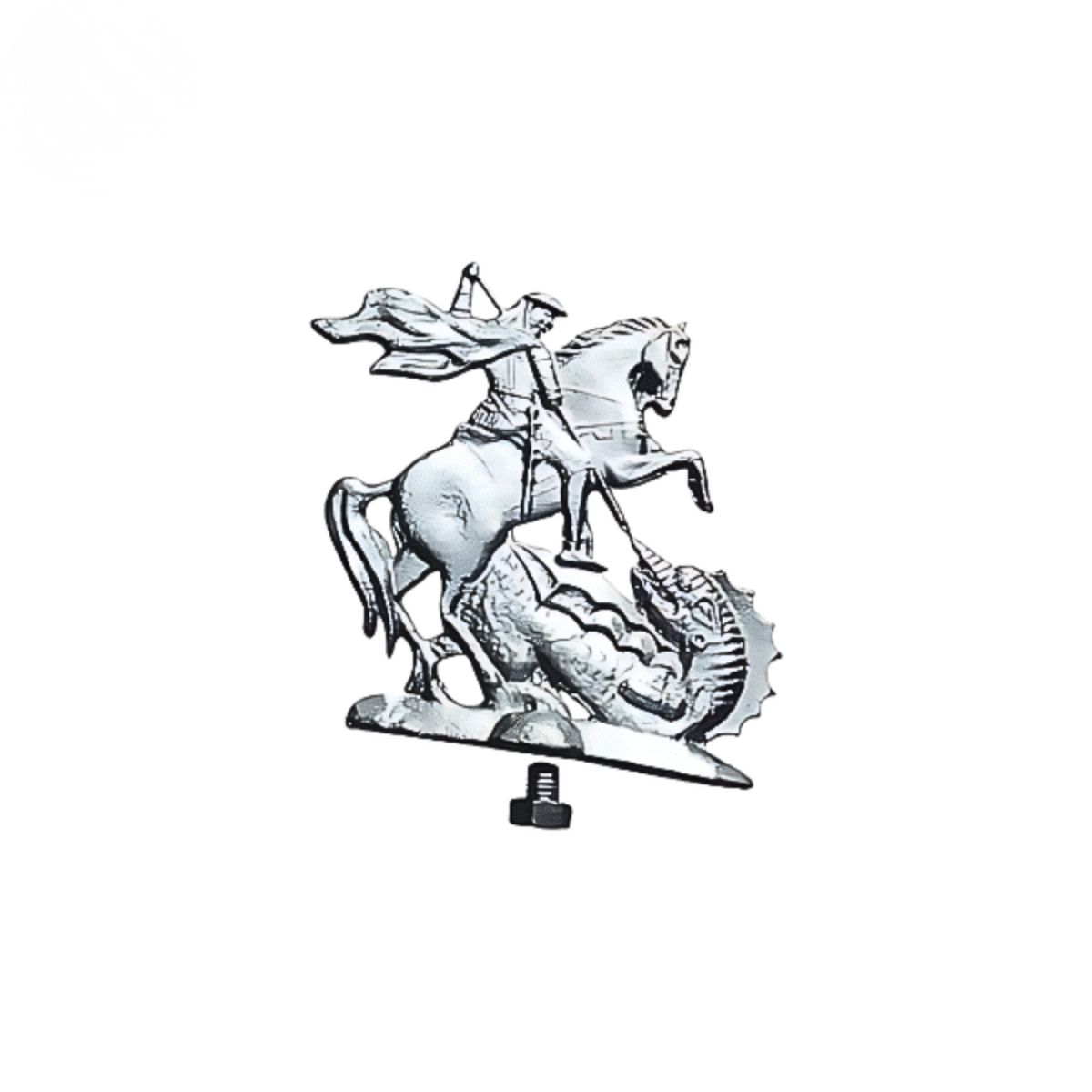 Peça decorativa São Jorge com alto relevo e encaixe ajustável. Ideal para personalizar bicicletas clássicas e colecionáveis.