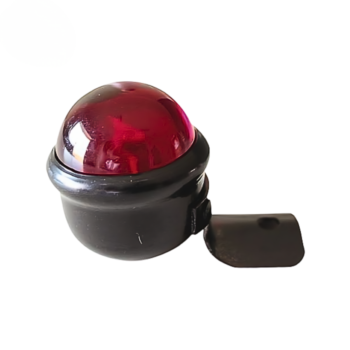 Lanterna traseira com lente vermelha em formato hemisférico e base metálica preta com suporte de fixação. Modelo raro conhecido como “Olho de Sapo”, utilizado em bicicletas e ciclomotores alemães entre as décadas de 1910 e 1920. Ideal para restauração de peças históricas, com visual robusto e estética industrial retrô.
