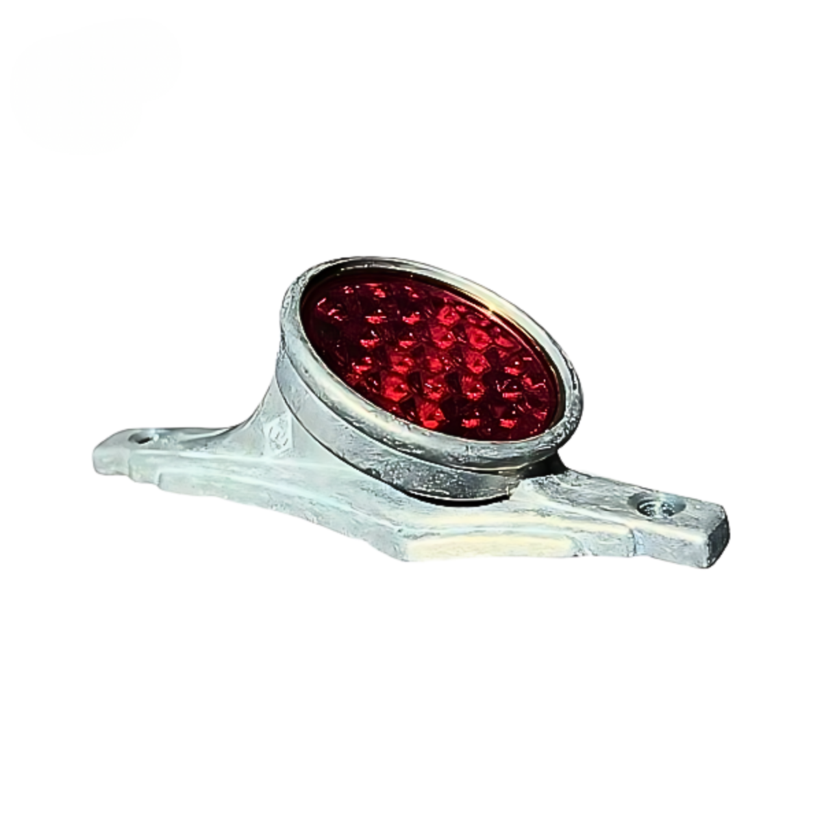 Lanterna traseira com lente vermelha circular texturizada e base metálica com fixação dupla, inspirada no padrão balão usado em bicicletas e ciclomotores Prosdócimo e Husqvarna. Ideal para restaurações fiéis de modelos antigos, com visual robusto e acabamento retrô que valoriza projetos clássicos.