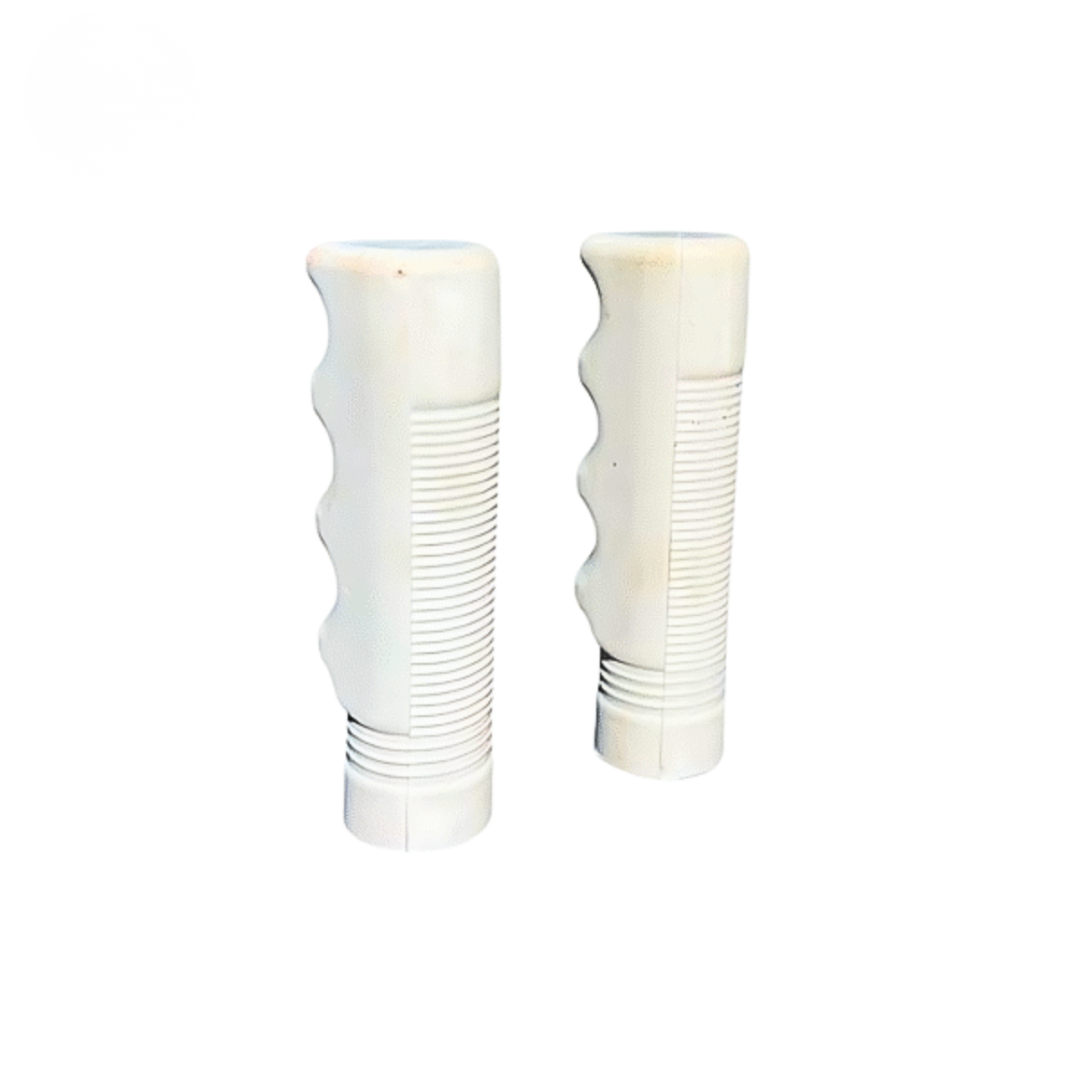 Punhos anatômicos de 16 mm na cor branca, fabricados em borracha macia de alta resistência. Garantem conforto, firmeza e um toque clássico que combina com modelos retrô e triciclos infantis.