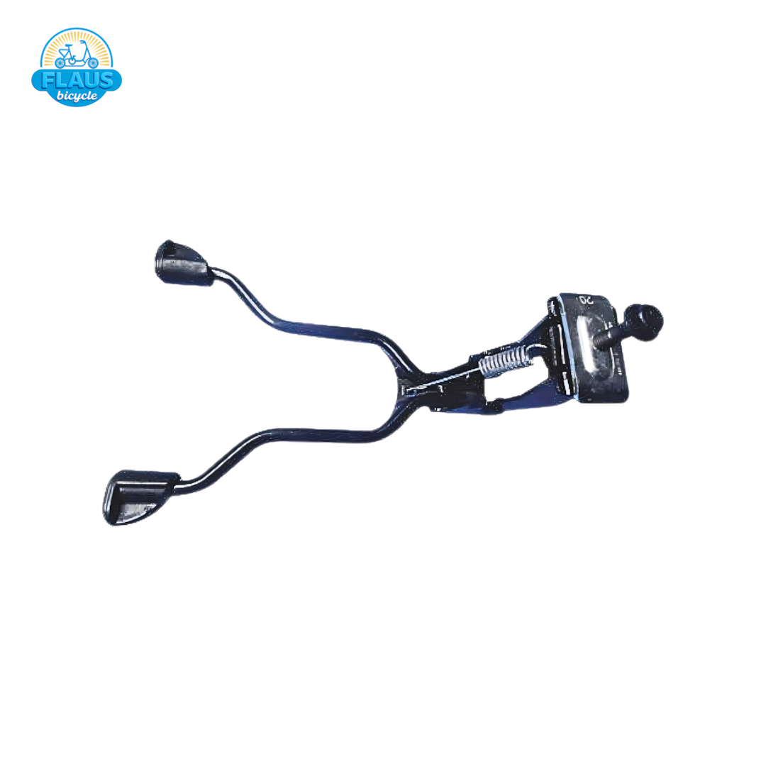 Arquitetura de braços duplos que apoia a bicicleta com equilíbrio, evitando tombos. Cabeça com boa área de contato para proteger o quadro. Produção Flaus Bicycle com articulação suave e material reforçado.