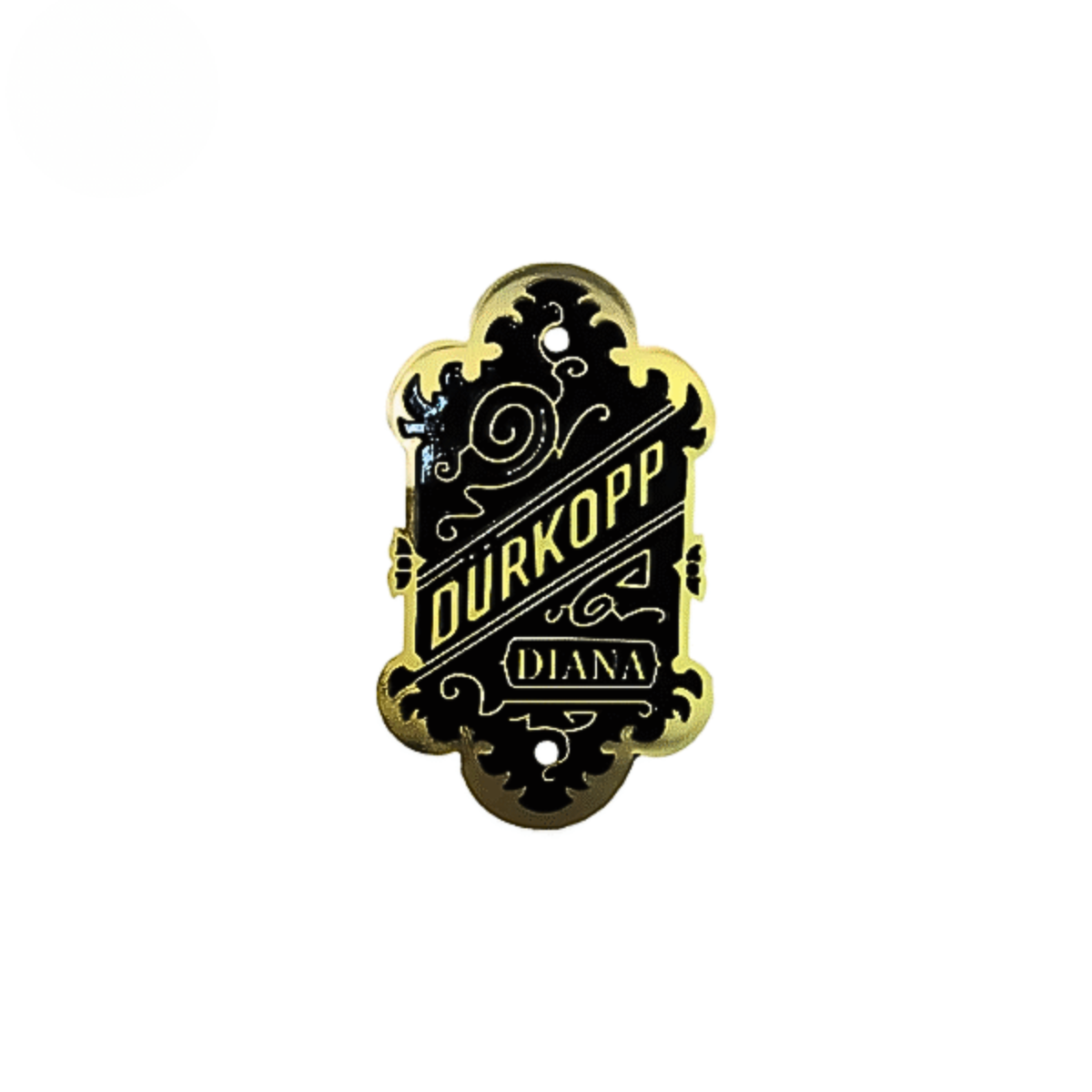 Plaqueta frontal Durkoop com tipografia ornamentada e moldura em curvas simétricas. Apresenta padrão estético refinado e proporções fiéis ao estilo europeu. Indispensável para restaurações completas ou composições de coleção.