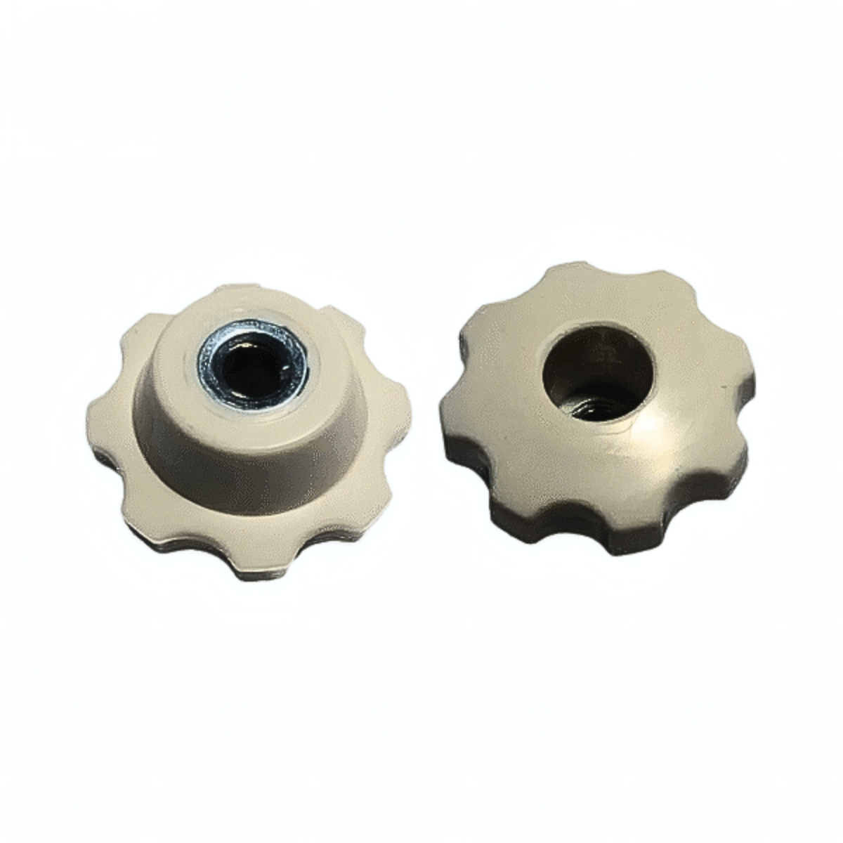 Porca Dobramatic branca para Monareta, acabamento limpo e rosca de precisão.