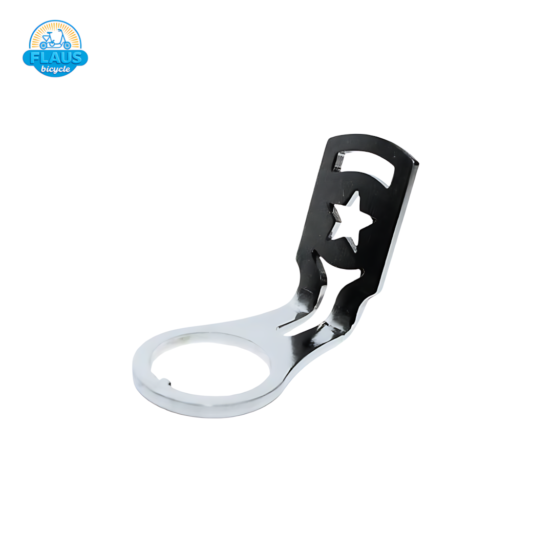 Suporte frontal no padrão sueco com estrela vazada e base de fixação para o garfo. Mantém o farol centralizado, reduz vibração e preserva o visual europeu clássico em restaurações premium.
