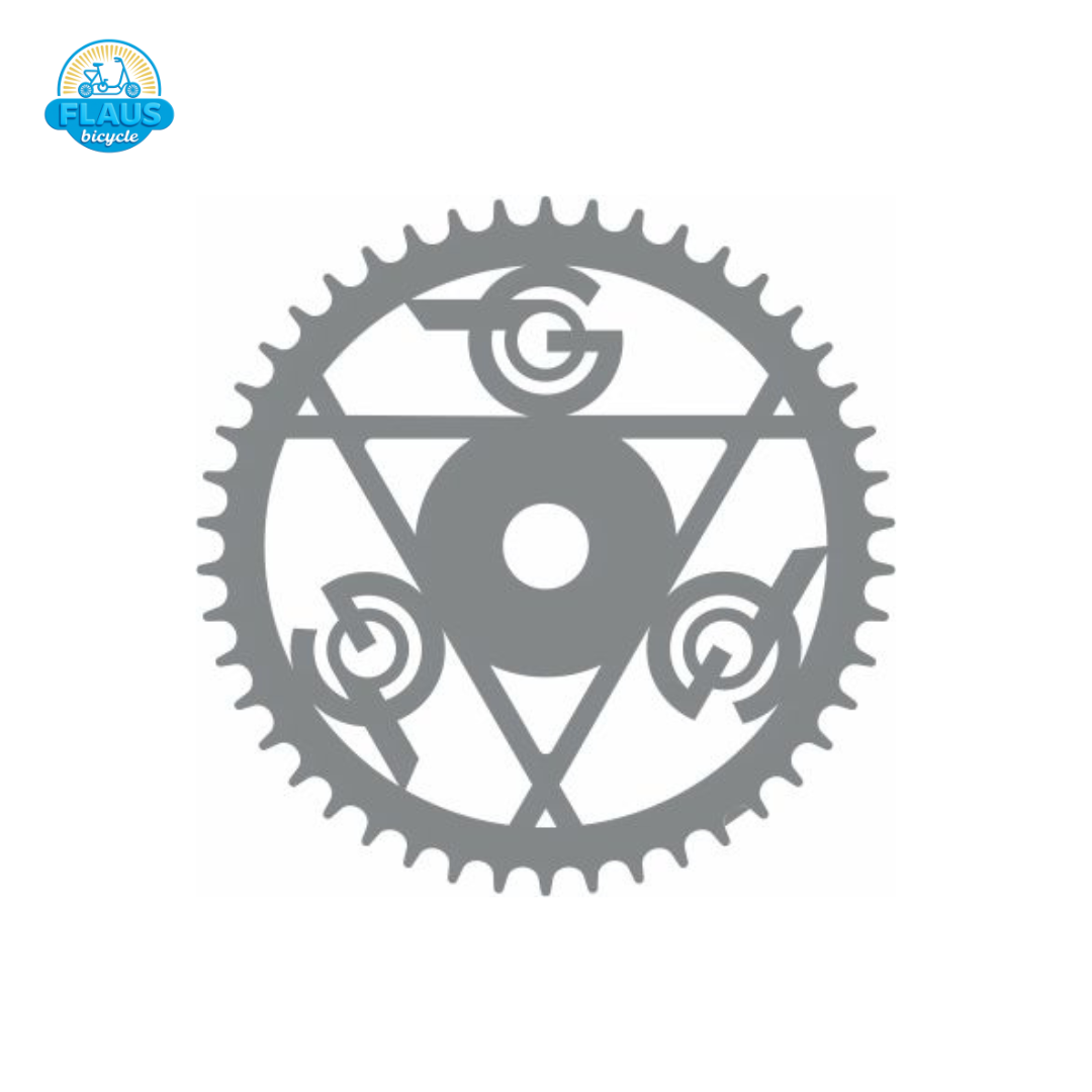 Coroa Goricke 3G alemã com 46 dentes e recortes ornamentais em espiral. Modelo de alta densidade para bicicletas clássicas e colecionáveis de prestígio.