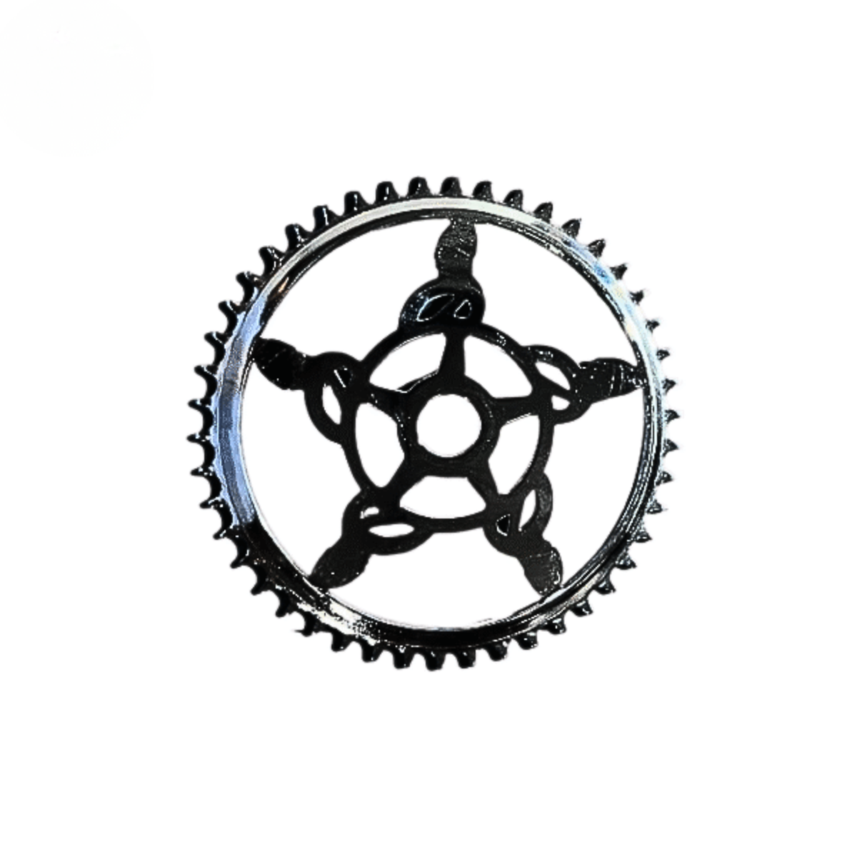Coroa Norman inglesa com 46 dentes, design clássico e recortes originais. Produzida em aço tratado para alta durabilidade e encaixe perfeito em pedivelas antigos. Ideal para restaurações e coleções de bicicletas britânicas.