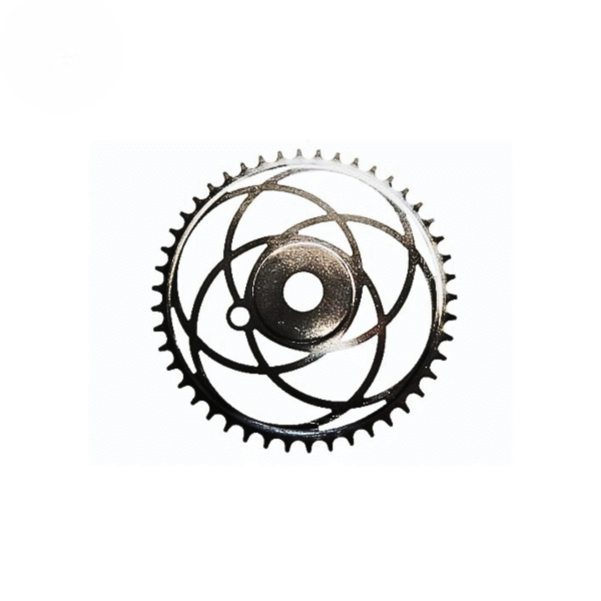 Coroa Prosdócimo 52 padrão sueco, compatível com pedivelas de vela normal. Acabamento polido e recorte artístico característico das bicicletas clássicas de exportação.